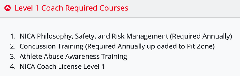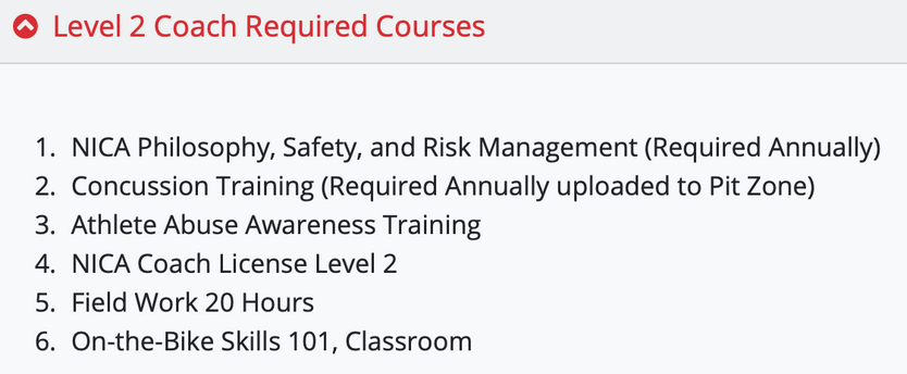 All first-year coaches must complete Level 1 requirements in NICA’s PitZone system